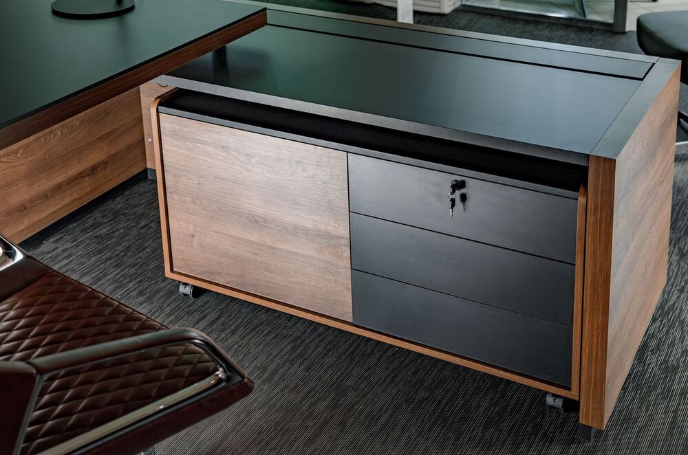 More Executive – элитный кабинет руководителя, сочетающий благородную эстетику натурального дерева и кожи с современной функциональностью. Стол с лакированной столешницей и кожаной вставкой дополнен практичной боковой приставкой, создавая идеальное рабочее пространство для первых лиц компании. Прочная конструкция из массива ореха или дуба подчеркивает статус владельца, а продуманная эргономика обеспечивает комфорт в работе. Российский аналог – коллекция Murano, сохраняющая все преимущества итальянского дизайна.