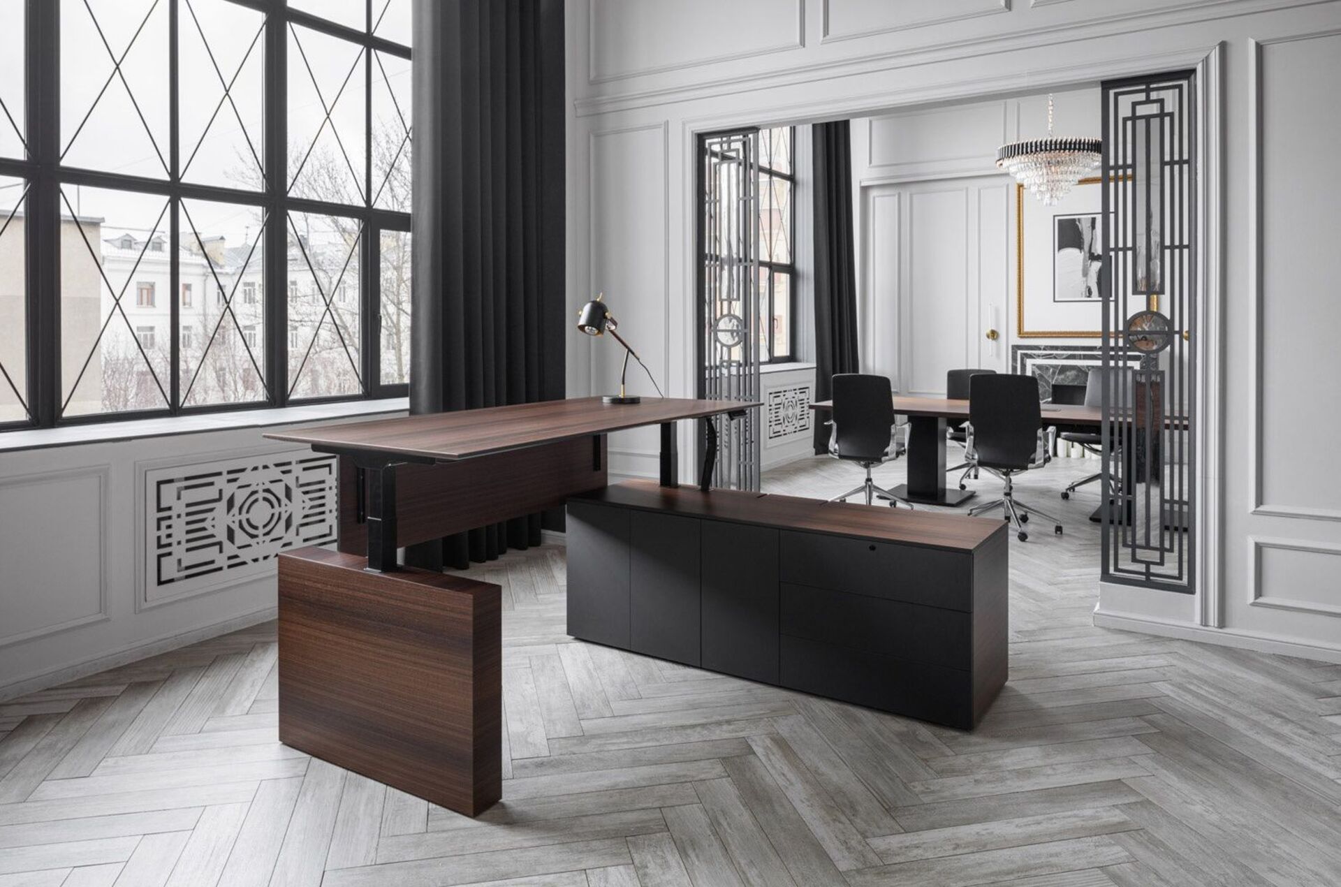 Кабинет руководителя Enzo — российская интерпретация культового итальянского кабинета Frame Executive, воплощающая современный подход к организации рабочего пространства. Как и оригинал, эта модель сочетает чистые линии, премиальные материалы и модульную конструкцию.