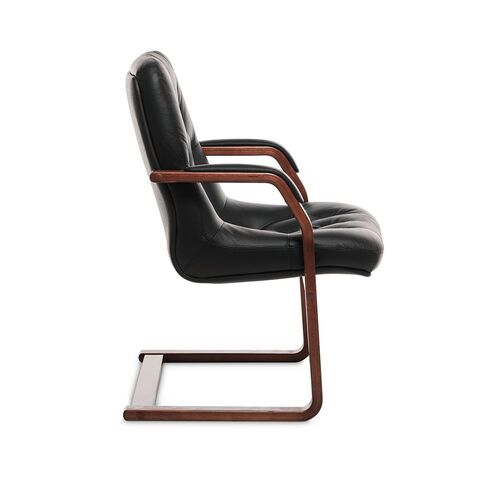 Кресло посетителя LEEDS WOOD D Кожа+компаньон Черная