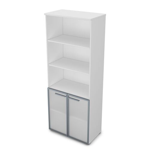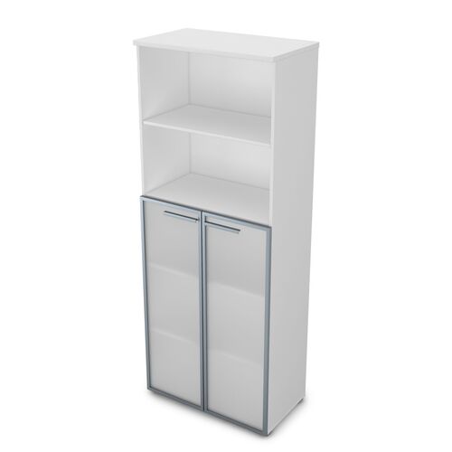Шкаф высокий со стеклом и открытыми полками 9Ш.005.21 Белый премиум
