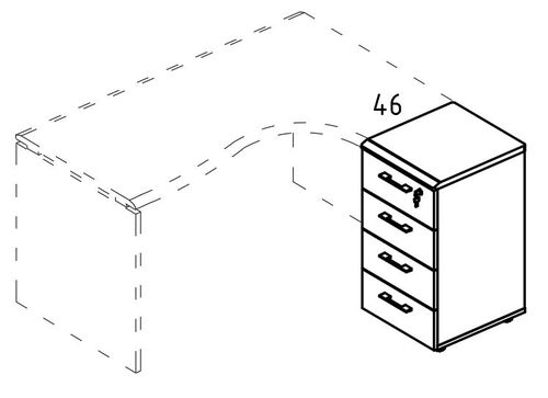 Тумба 4 ящика приставная с замком МР 9223