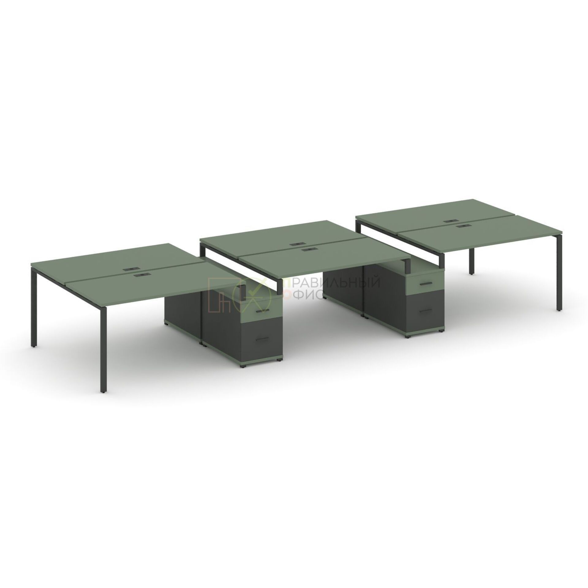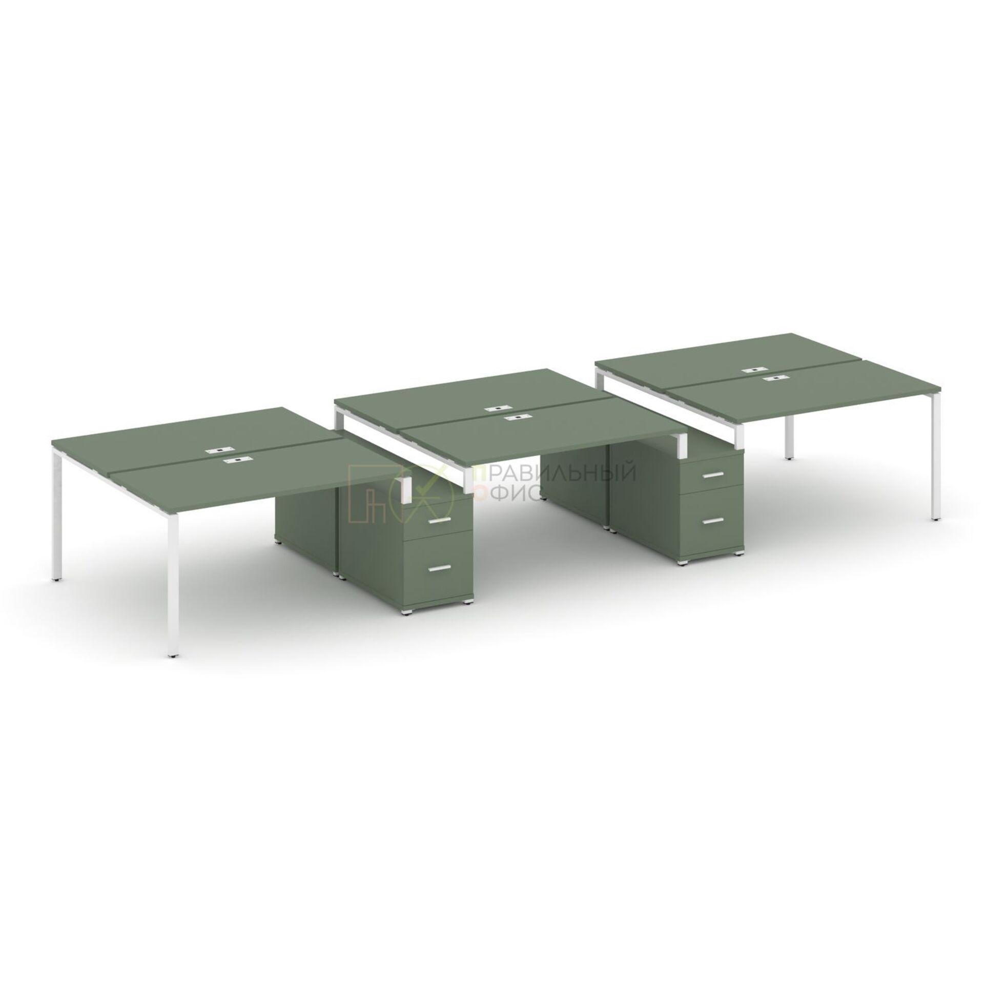 Рабочая станция на 6 мест с двумя двухсторонними опорными тумбами CN.DRS-339 A/B/W