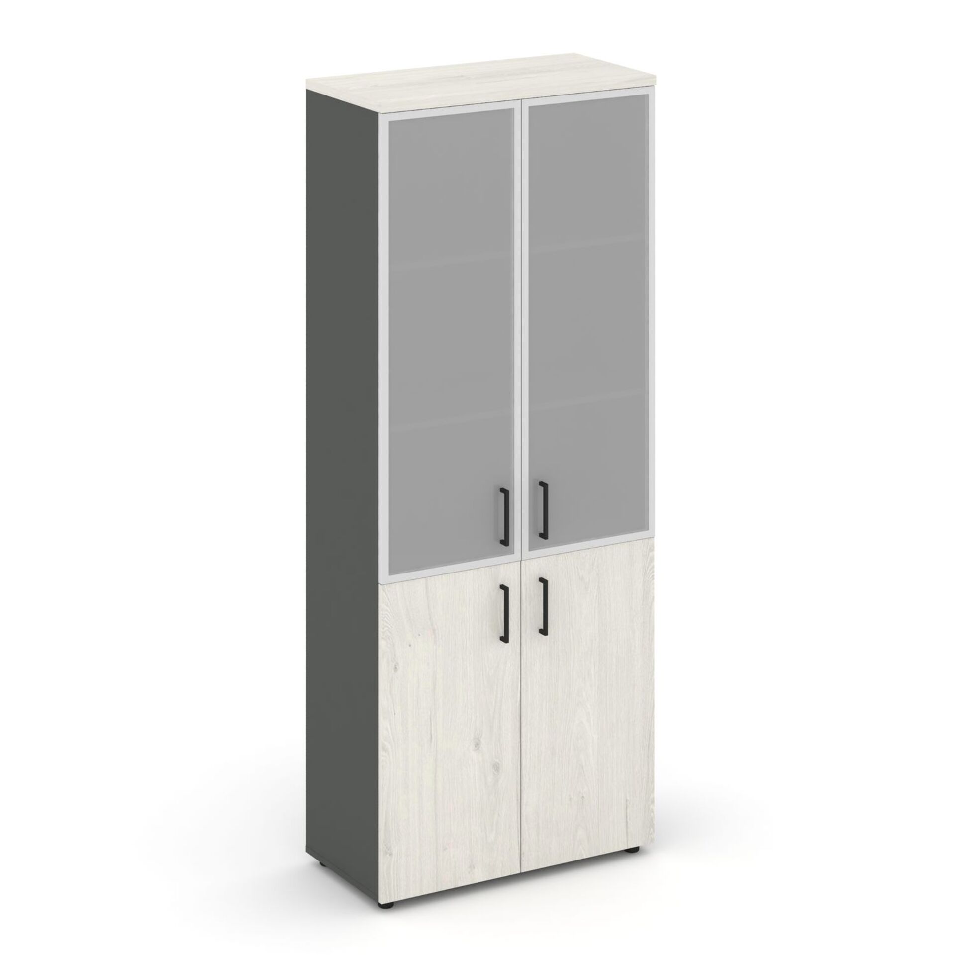 Шкаф высокий широкий (2 низких фасада ЛДСП + 2 средних фасада стекло сатин в раме) SN.STS.E-103