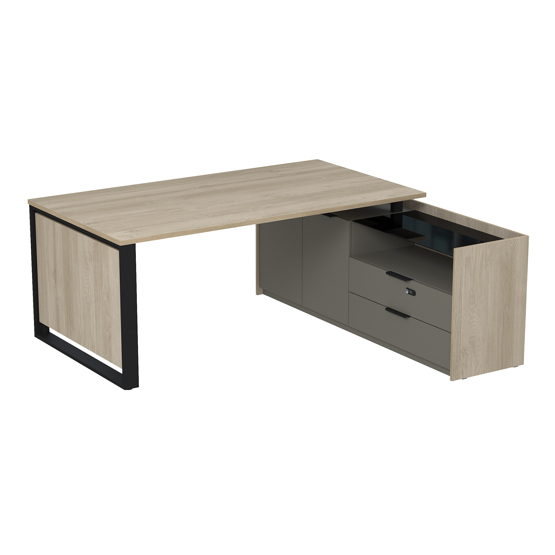 Стол рабочий на опорной двусоставной тумбе, с ящиками (метабокс), с код замком 15СОД-КЗ.1810