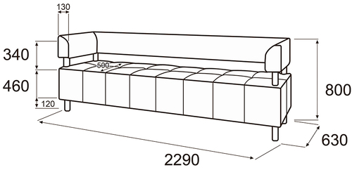 Размеры (ШхГхВ): 220x95x76 см.
