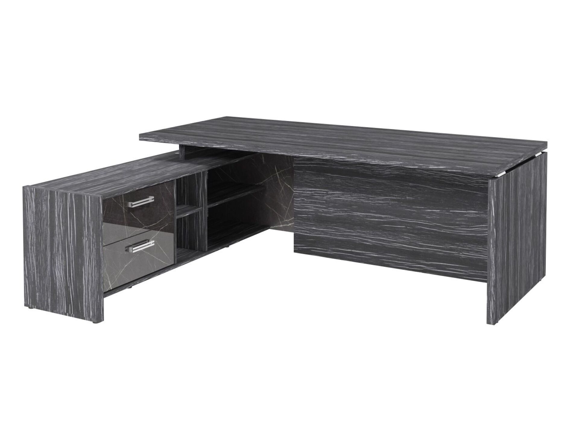 Стол руководителя с опорной тумбой (левый) (Фурнитура INOX) FI-121L.GG