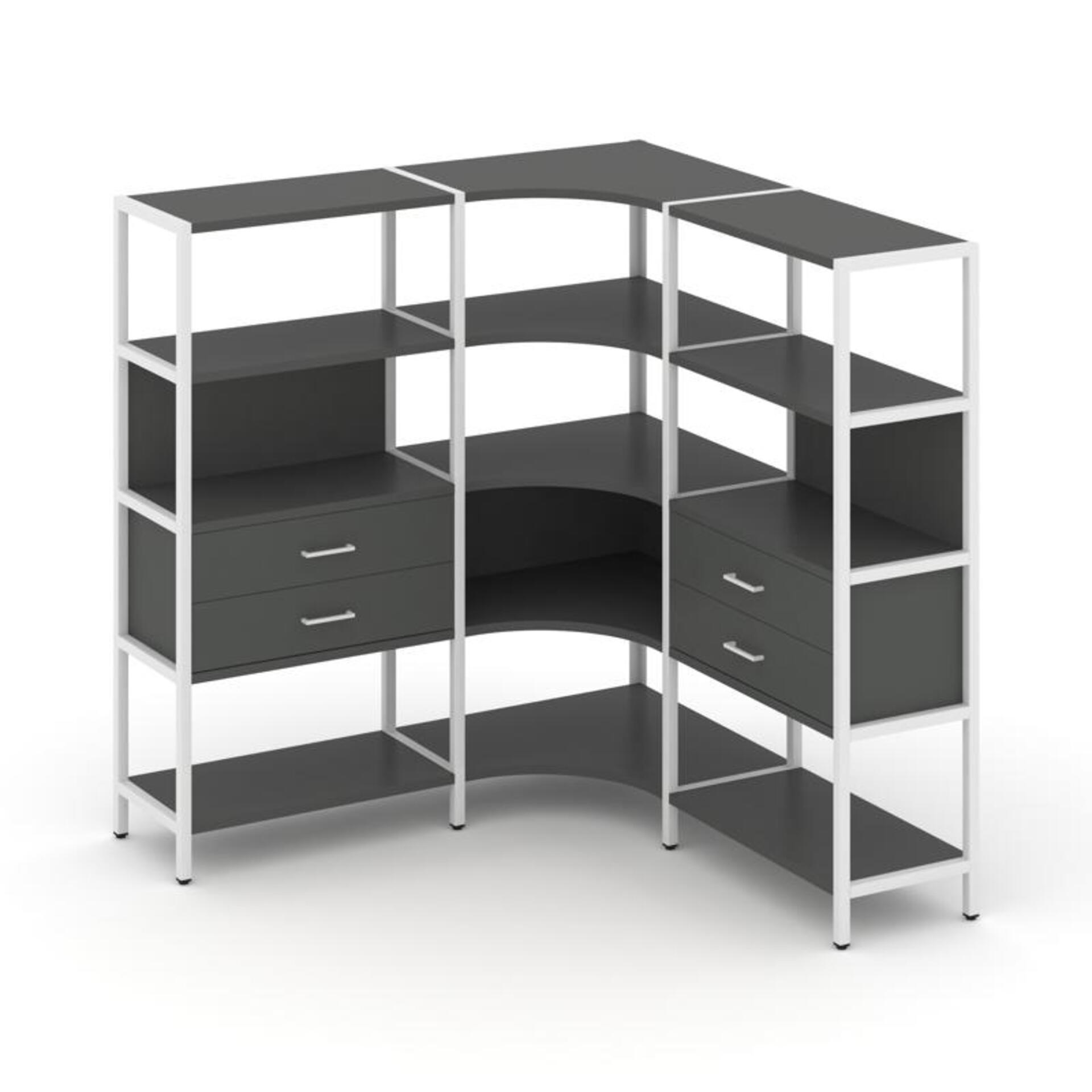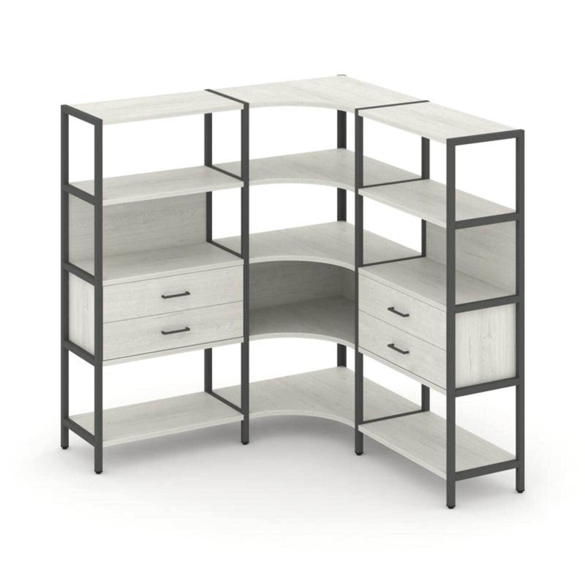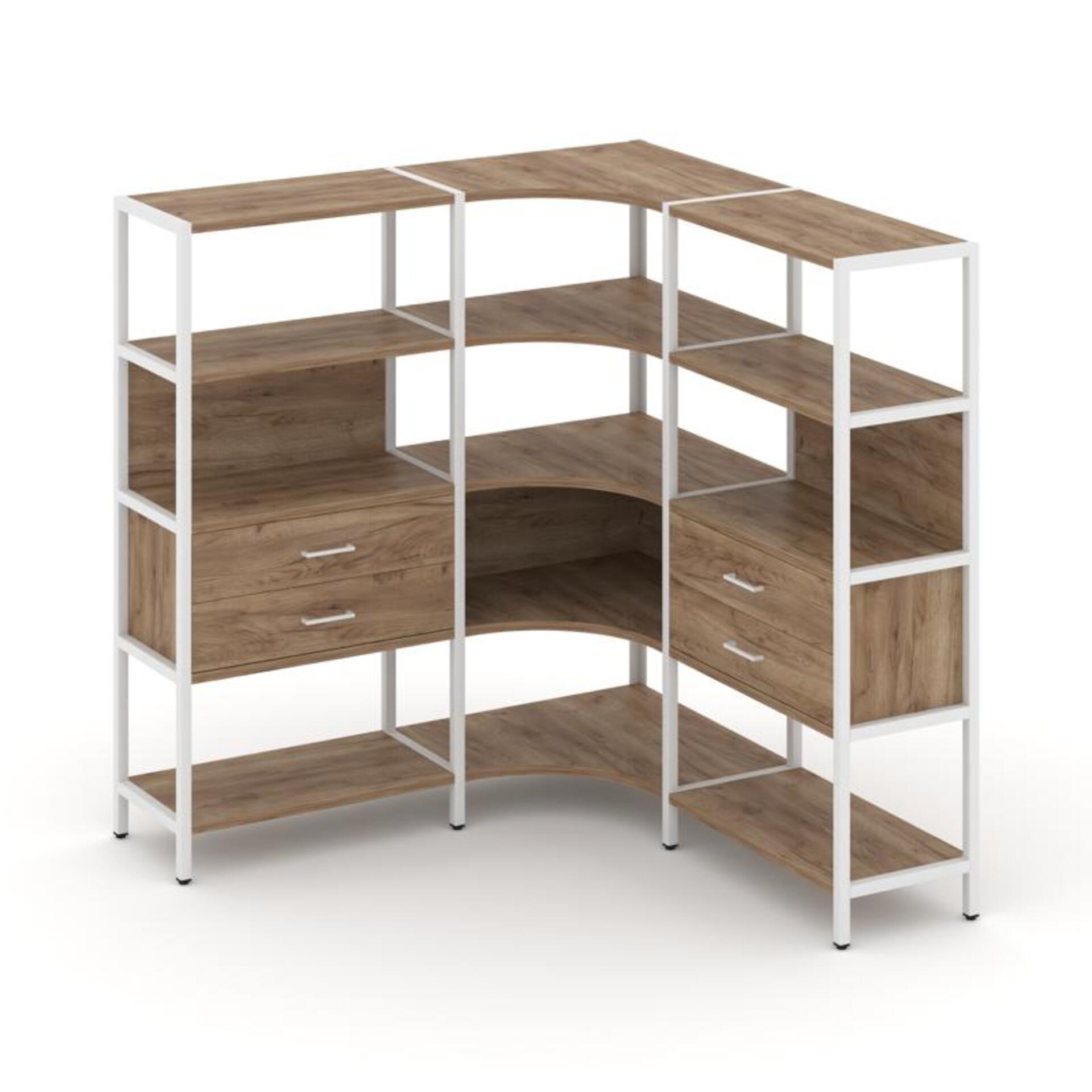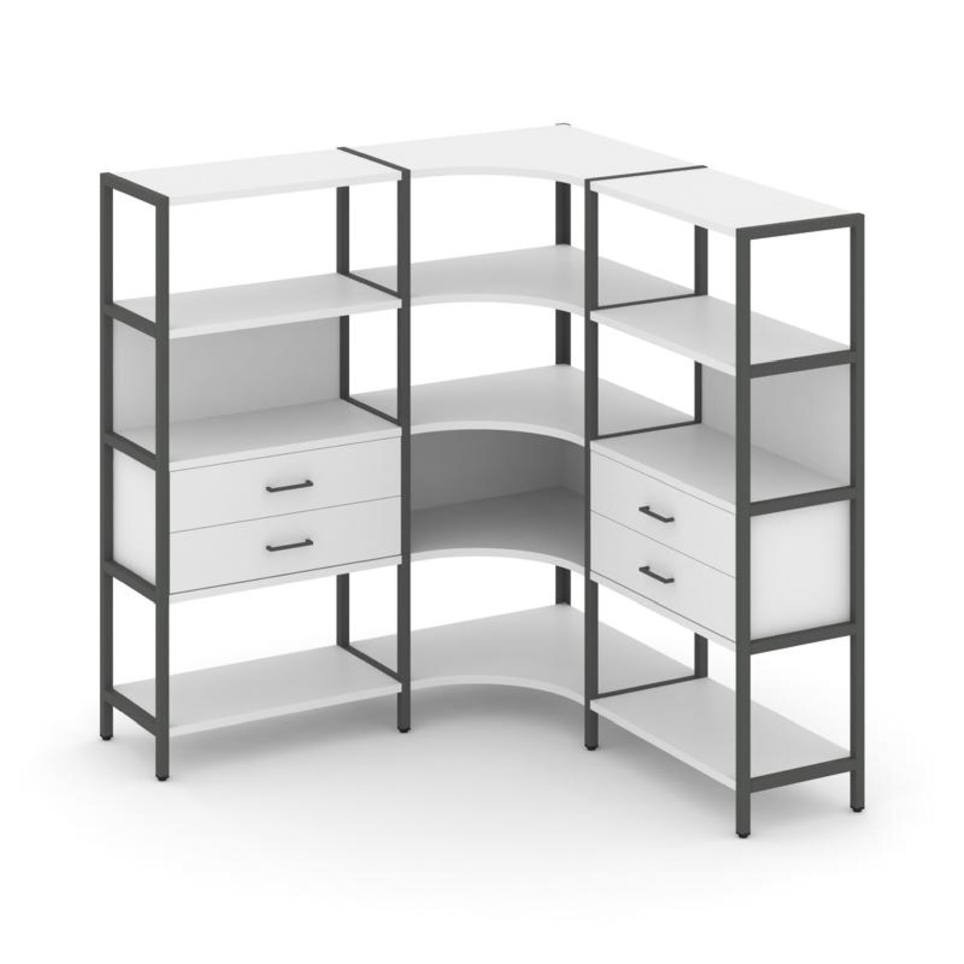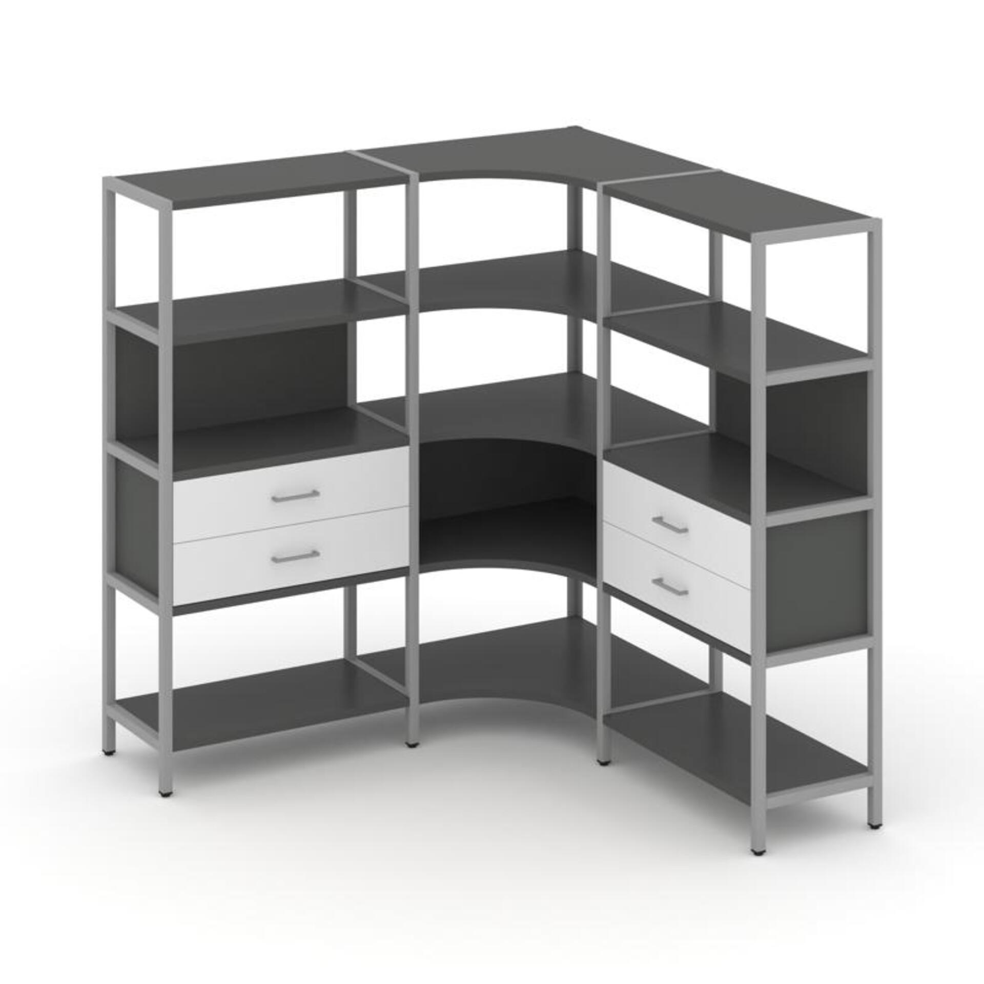 Трехсекционный угловой стеллаж четырехярусный с ящиками SN.STMU-431